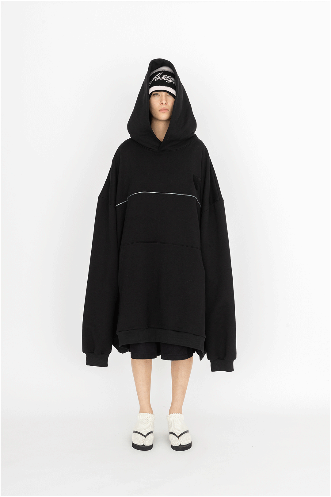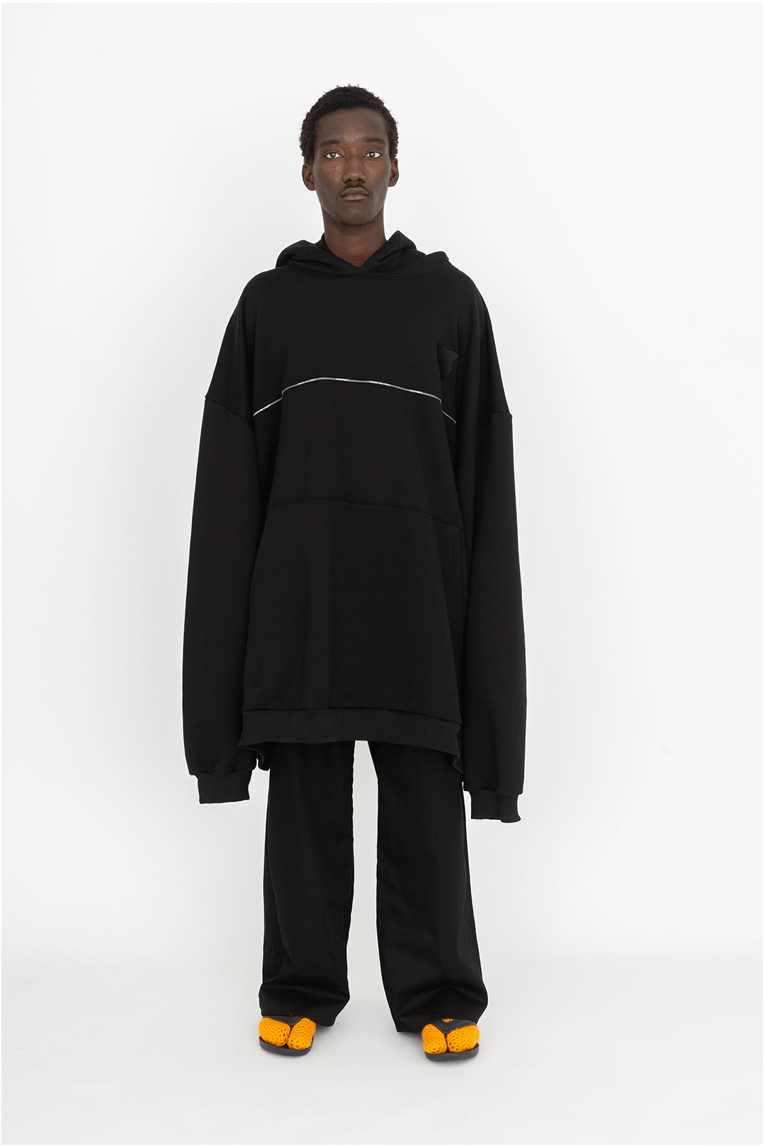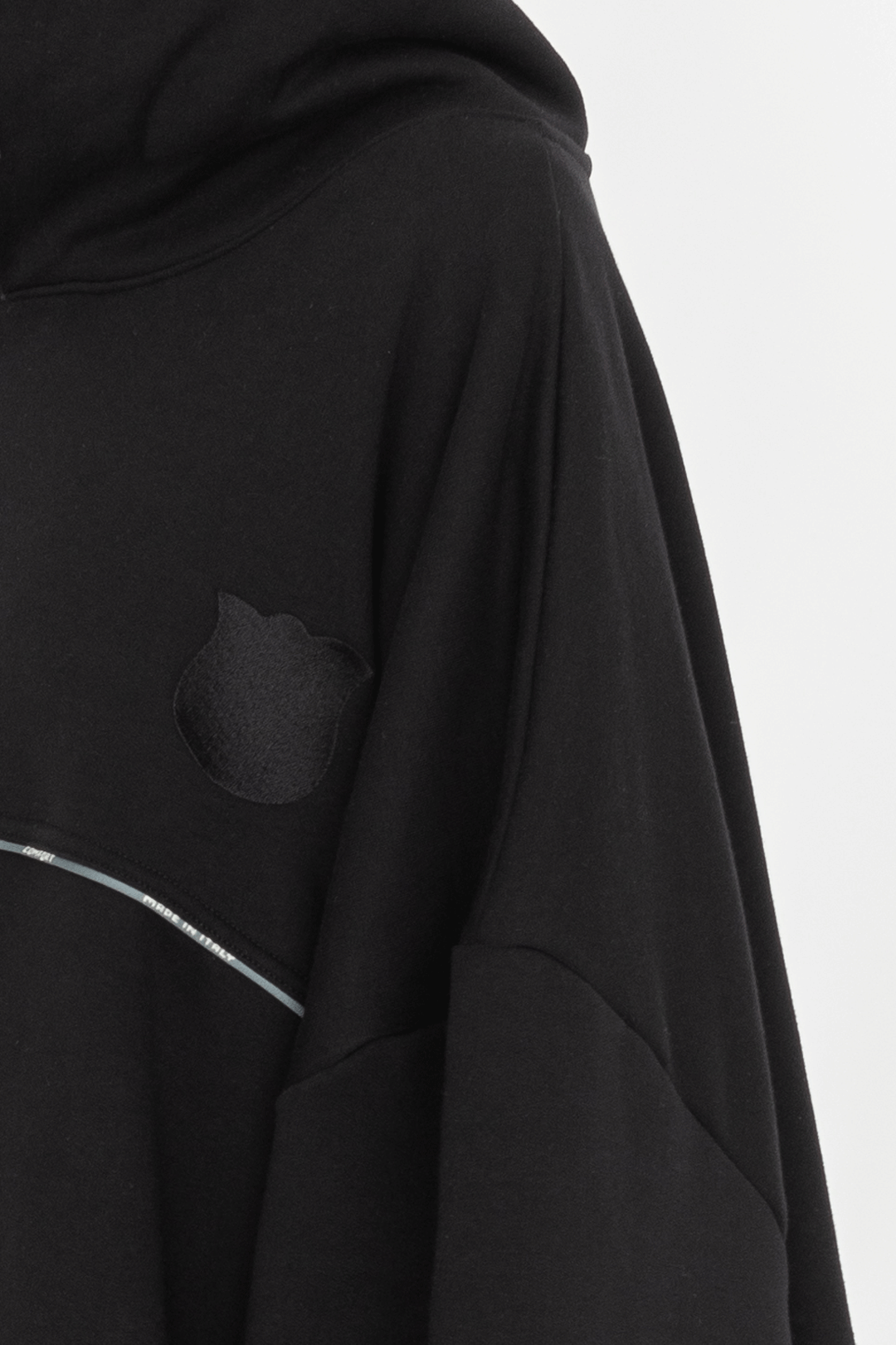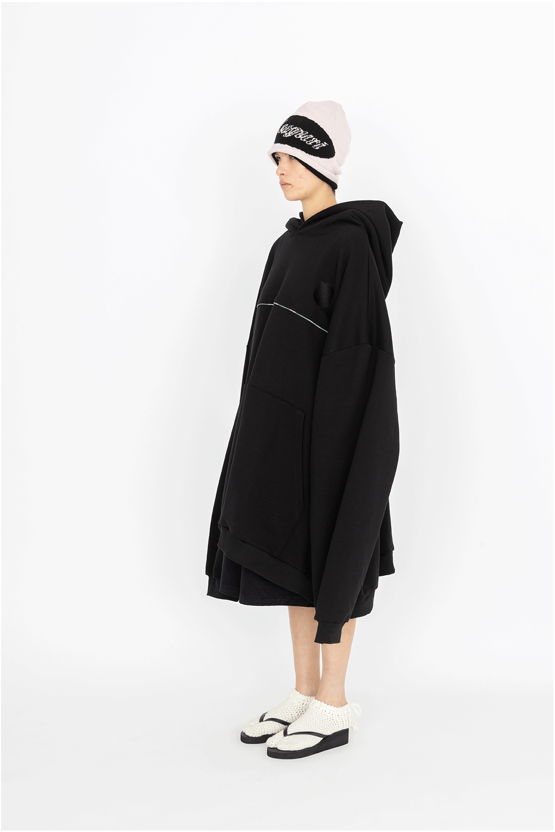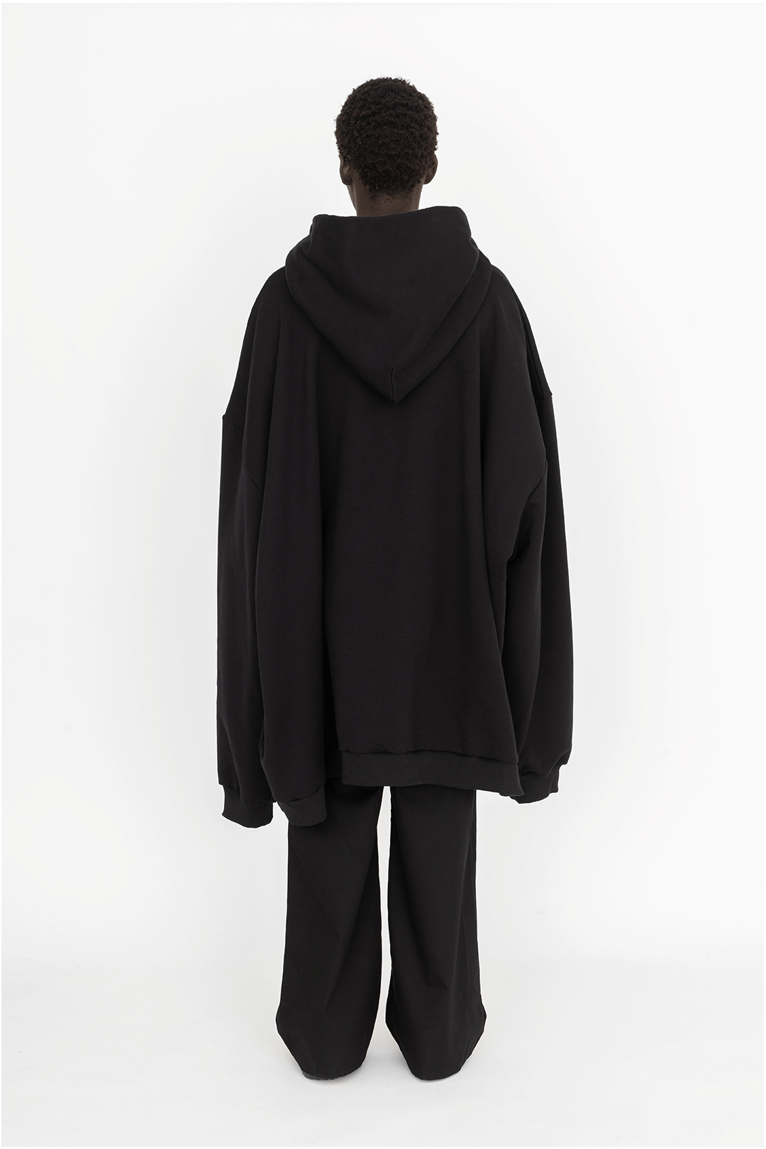 A signature piece from the OLOAPITREPS archive, the multisize hoodie is crafted from premium Italian cotton brushed inside for a soft and comfortable feel. Featuring tone-on-tone tulip embroidery and contrast piping details, it features an intentionally exaggerated design. The excess fabric creates a bold, oversized silhouette, a key element that defines the OLOAPITREPS garment’s unique and distinctive look.